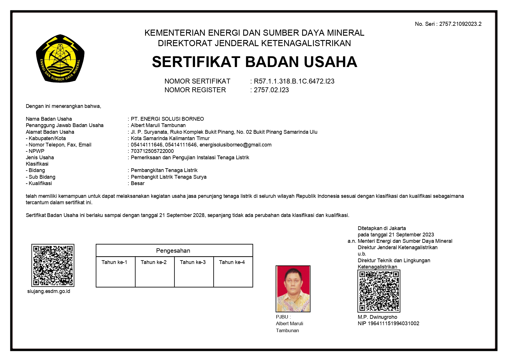Sertifikat Badan Usaha - PLTS